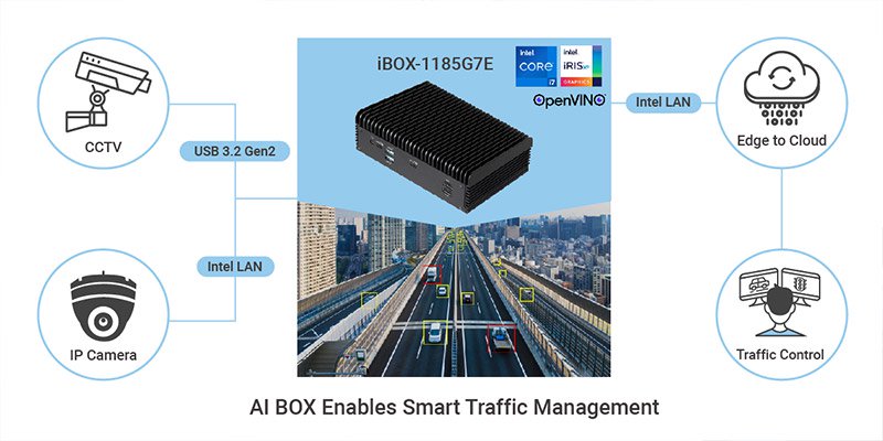 ASRock Industrial is collaborating with Intel ® to build AI BOX for smart traffic management to prevent accidents and control delays for a safer and smarter city. The system is powered by the iBOX-1185G7E running on Intel ® 11th Gen Core™ i7 Processors (Tiger Lake-UP3) with Intel ® Iris ® Xe Graphics plus new OpenVINO™ AI Deep Learning to boost high performance and real-time AI computing at 4.15 TFLOPS and 8.29 TOPS (Tiger Lake Core™ i7). With rich IOs, it can collect data from multiple CCTV monitors through USB 3.2 Gen2 and IP camera through Intel ® Gigabit LAN while connecting edge to cloud through Intel ® 2.5 Gigabit LAN for real-time traffic management.