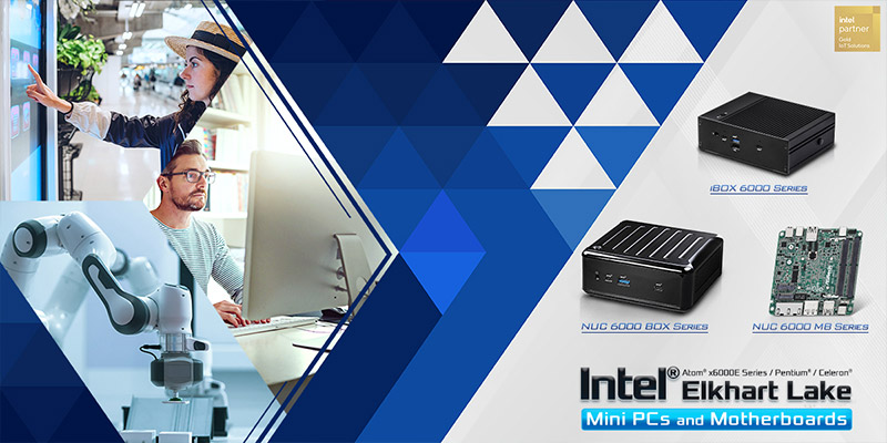 The new Mini PCs and motherboards powered by Intel® Atom® x6000E Series, Intel® Pentium® and Celeron® N and J Series Processors (Elkhart Lake) include selections- NUC 6000 BOX Series, iBOX 6000 Series, and NUC 6000 Motherboard Series. Featuring advanced CPU and graphics performance with integrated IoT features and longevity support, the new Series provides rich industrial-centric I/Os, including dual Gigabit Ethernet LAN ports, dual displays up to 4K at 60Hz, and dual storages with SATA 3.0 and M.2 Key M to accelerate system integration development for next generation IoT applications in areas including home, business, retail, banking, hospitality, manufacturing, transportation, healthcare industries, and more.