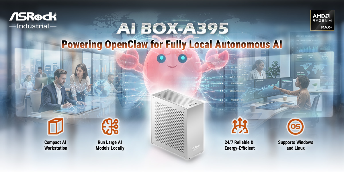 Taipei, Taiwan (April 21, 2026) – ASRock Industrial is proud to announce that its AI BOX‑A395 is now recognized as the premier hardware platform for running OpenClaw, a cutting-edge local AI agent framework designed for privacy-focused, autonomous AI operations. Powered by AMD Ryzen™ AI Max+ 395 processor, up to 128GB high-speed LPDDR5x-8000 unified memory, 10GbE LAN port, and equipped with advanced cooling for 24/7 silent operation, the AI BOX‑A395 offers exceptional performance, AI acceleration, and enterprise-grade stability in a compact form factor. This powerful combination enables the AI BOX‑A395 to run OpenClaw and large AI models locally, eliminating the need for cloud services and significantly reducing operational costs. It ensures that OpenClaw can operate continuously, efficiently, and reliably in both enterprise and personal environments, while maintaining the highest levels of security, performance, and cost-effectiveness.